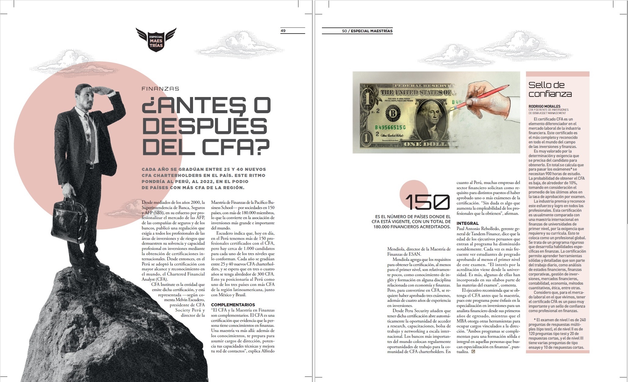 Escudero indica que, hoy en día, en el Perú tenemos más de 150 profesionales certificados con el CFA, pero hay cerca de 1.000 candidatos para cada uno de los tres niveles que lo conforman. Cada año se gradúan entre 25 y 40 nuevos FA charterholders, y se espera que en tres o cuatro años se tenga alrededor de 300 CFA. Esto ya posicionaría al Perú como uno de los tres países con más CFA de la región latinoamericana, junto con México y Brasil.