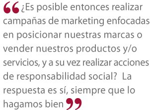 ¿Es posible entonces realizar campañas de marketing enfocadas en posicionar nuestras marcas o vender nuestros productos y/o servicios, y a su vez realizar acciones de responsabilidad social? La respuesta es sí, siempre que lo hagamos bien y que cumplamos con los requisitos que nos pide la responsabilidad social?