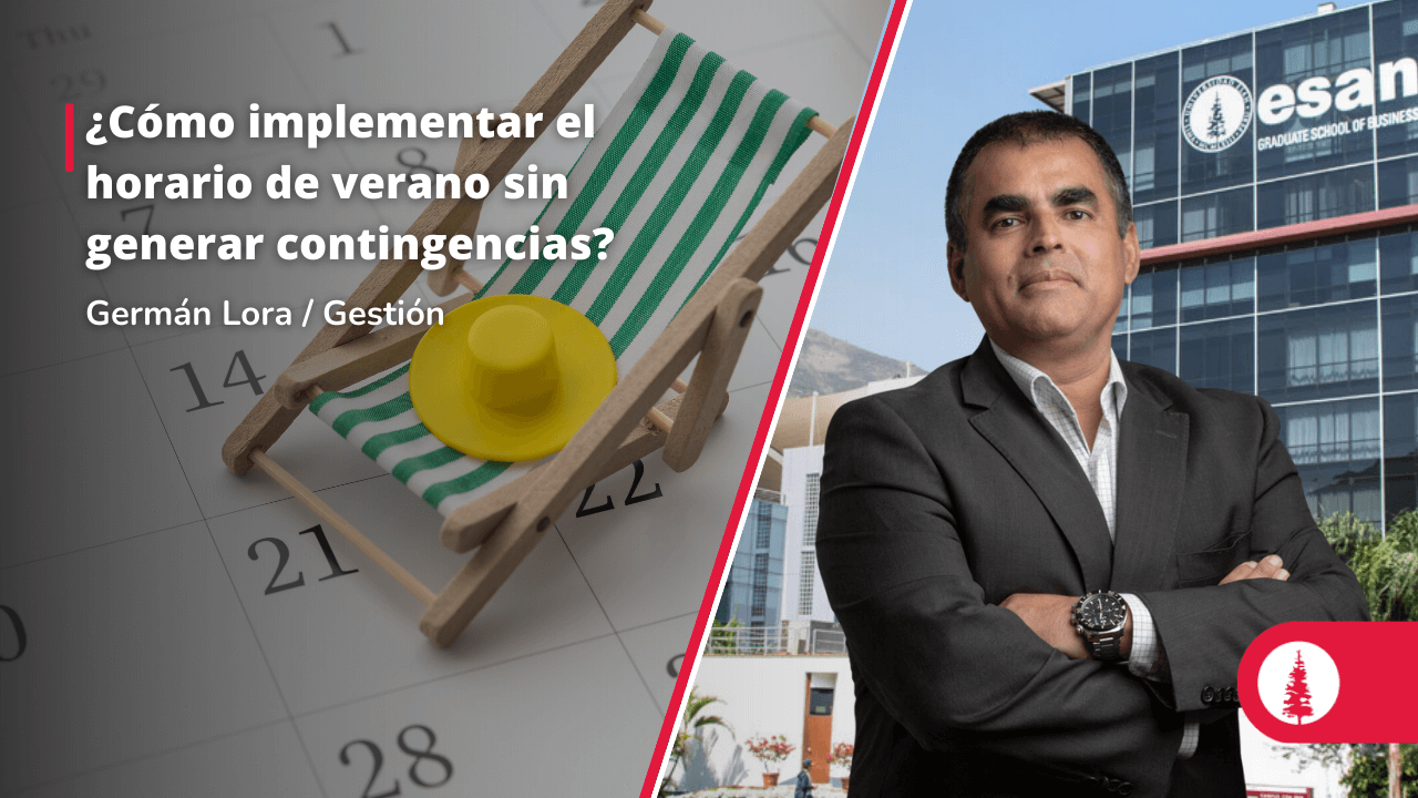 Germán Lora, docente de ESAN Business Law, expuso sobre las implicancias legales de implementar el "horario de verano" sin la debida precisión jurídica. El experto explicó que, según antecedentes de la Corte Suprema, este beneficio puede transformarse en una costumbre laboral obligatoria. Para evitar estos riesgos, Lora brindó sus recomendaciones en la siguiente nota en Gestión.