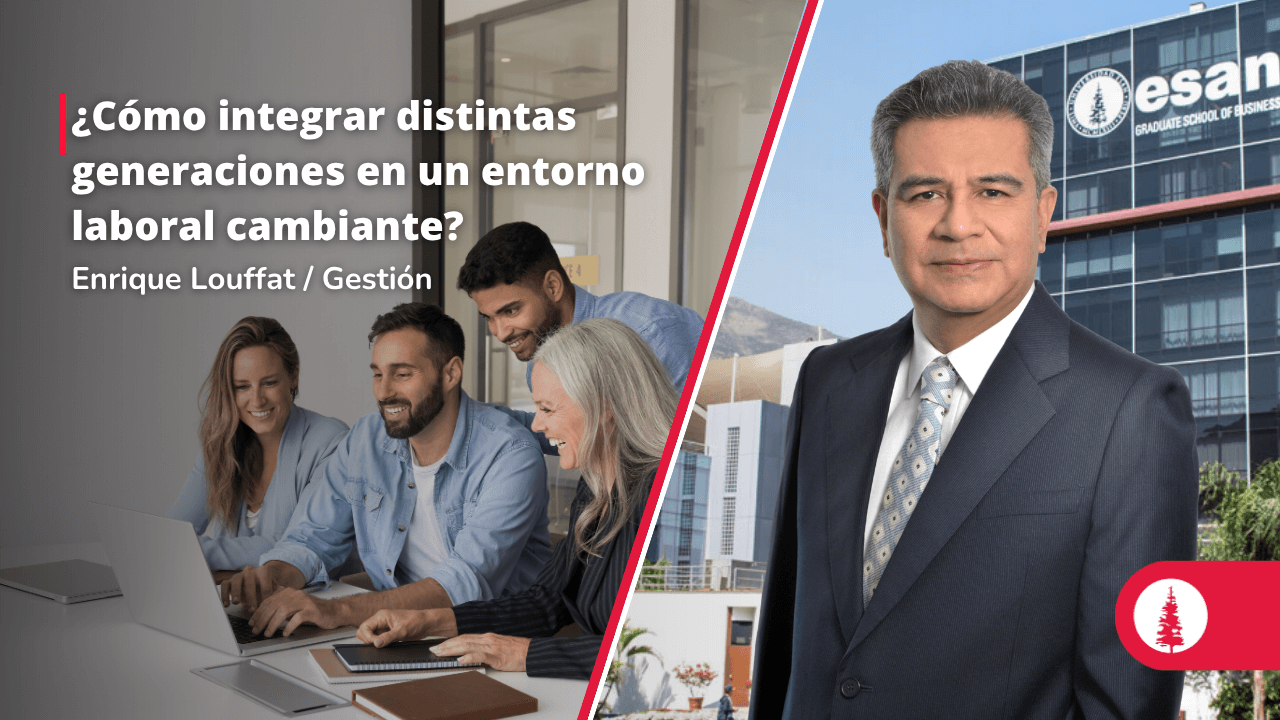 Enrique Louffat, profesor principal en los Programas en Administración del MBA, Maestrías Especializadas y de Educación Ejecutiva de ESAN, explicó en Gestión que la convivencia entre distintas generaciones en el trabajo representa uno de los mayores desafíos para las organizaciones. Señaló que las diferencias en estilos, valores y formas de comunicación deben ser gestionadas con estrategias como mentorías cruzadas, esquemas laborales flexibles y programas de formación adaptados.