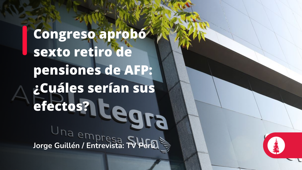 Jorge Guillén, docente de la Maestría en Finanzas de ESAN, comentó en TV Perú las consecuencias que traería a los jubilados y a las fuentes de financiamiento del gobierno el sexto retiro de fondos de pensiones administrados por las AFP. En esa línea, sugirió también algunas ideas que podrían aplicarse a futuro para mejorar el sistema de pensiones.