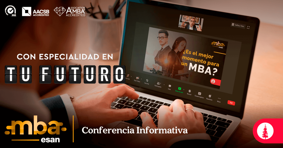Este 23 de junio, a las 17:0 horas, vía Zoom, se realizará la conferencia informativa del MBA de ESAN a nivel nacional con el propósito de dar a conocer sus modalidades de estudio (Tiempo Completo, Tiempo Parcial y Weekends), testimonios de éxito y experiencia de vida de sus graduados, ventajas diferenciales, entre ellas la flexibilidad que le ofrece a los participantes, y ciudades en las que se encuentra en convocatoria (Arequipa, Cusco, Huancayo, Piura y Trujillo).