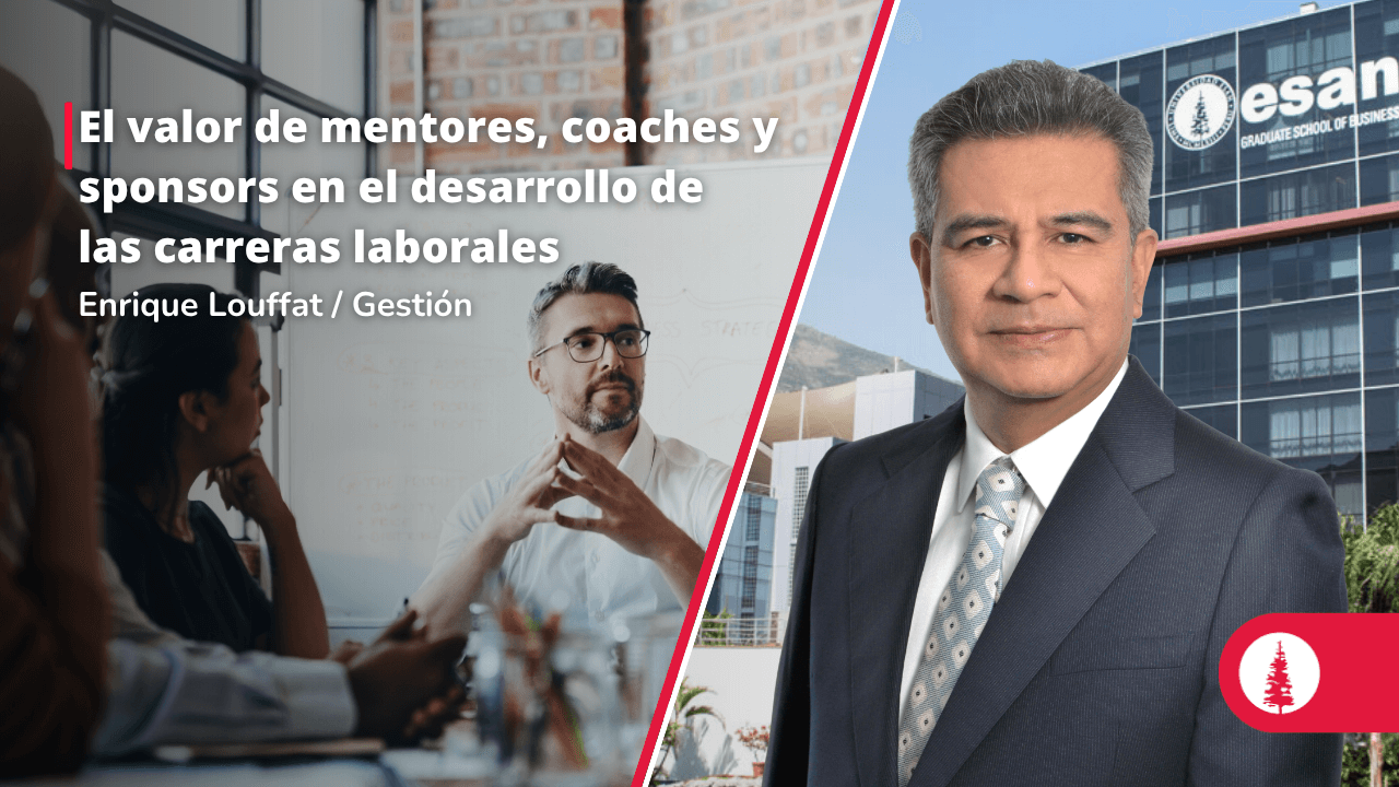 Enrique Louffat, profesor principal en los Programas en Administración del MBA, Maestrías Especializadas y de Educación Ejecutiva de ESAN, sostuvo en Gestión que el desarrollo de una carrera profesional no depende solo del talento, sino también de una gestión estratégica y consciente por parte del propio trabajador. Para lograrlo, se requiere planificar con visión, organizar actividades, construir relaciones clave y monitorear avances. Destacó el rol esencial de figuras como mentores, coaches y sponsors, quienes brindan guía, apoyo emocional, desarrollo de habilidades e impulso profesional.