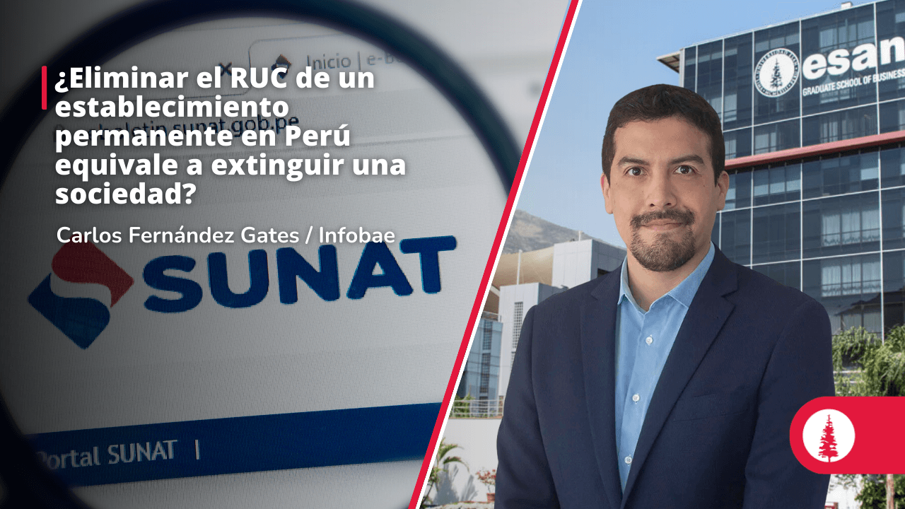 Carlos Fernández Gates, profesor de ESAN Business Law, cuestionó en Infobae la reciente postura de la Sunat, la cual establece que la baja definitiva del RUC de un Establecimiento Permanente (EP) equivale a la disolución y liquidación de una sociedad. El experto aclara que el EP es una figura creada exclusivamente para fines tributarios y no constituye una sociedad bajo la Ley General de Sociedades; por ende, no requiere de un proceso de liquidación formal con balances y liquidadores.