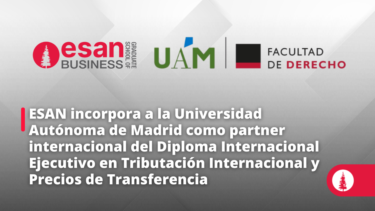 ESAN Graduate School of Business se complace en anunciar que, desde este año, la Facultad de Derecho de la Universidad Autónoma de Madrid (UAM) será partner académico del Diploma Internacional en Tributación Internacional y Precios de Transferencia. Los alumnos de este programa podrán participar en un seminario de tributación internacional de seis horas, con certificado de participación, impartido por profesores designados por la facultad.