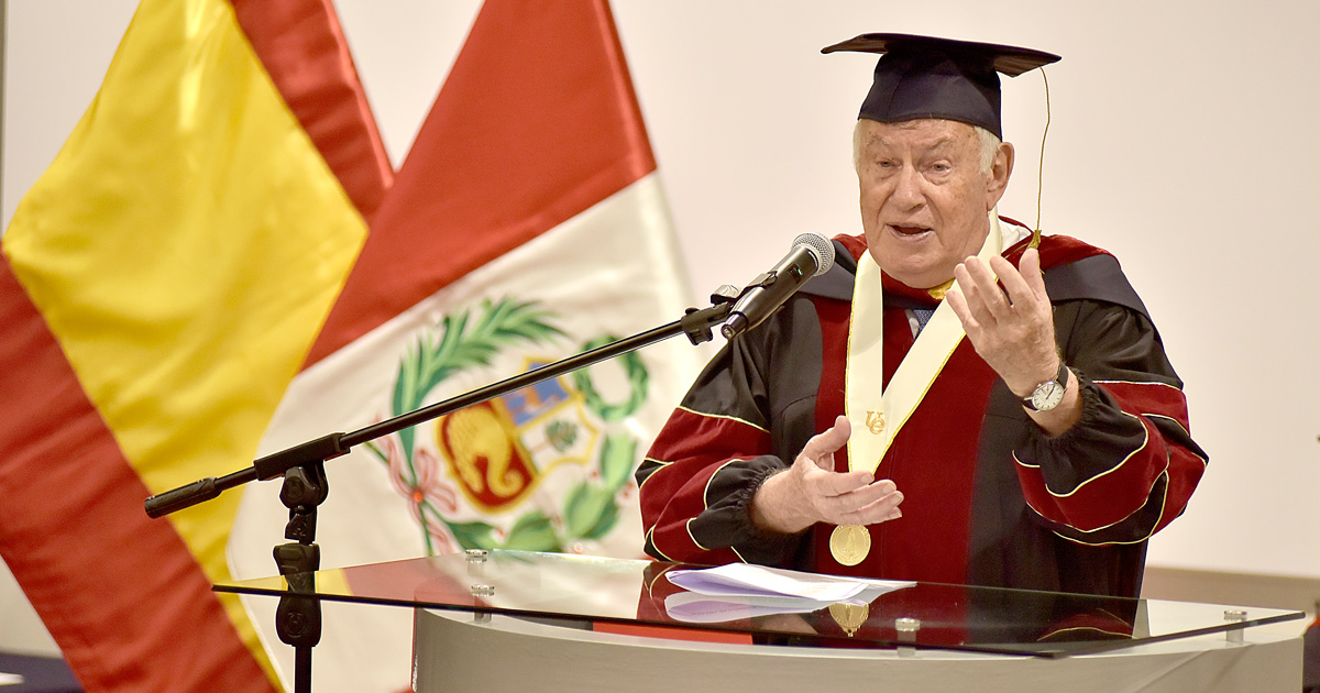 En reconocimiento a su destacada trayectoria como docente y a su valiosa contribución en el campo de la Administración, la Universidad ESAN concedió el 15 de febrero el título «Doctor Honoris Causa» al Dr. Eduard Bonet Guinó, profesor emérito de ESADE-Universidad Ramón Llull, España, cuyas publicaciones sobre Management, Retórica, Epistemología, Lógica, entre otros campos, han significado un notable aporte a la comunidad científica internacional.