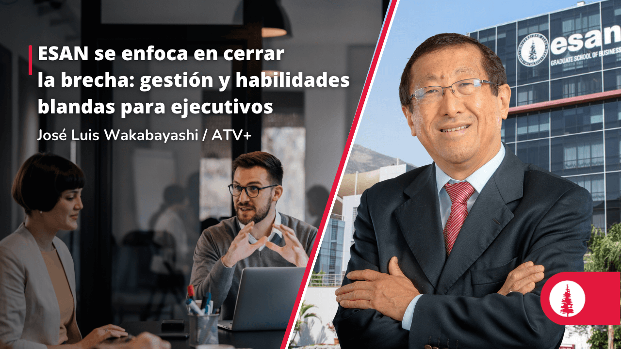 José Luis Wakabayashi, director comercial de ESAN, analizó en ATV+ los retos de la educación ejecutiva en el Perú. El experto señaló que si bien los profesionales (médicos, mineros, agrónomos, entre otras profesiones) son técnicamente sólidos, a menudo carecen de habilidades de gestión y liderazgo. Destacó que ESAN se enfoca en cerrar esa brecha, incorporando tecnología y habilidades blandas.