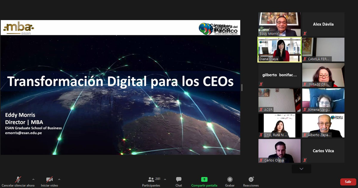 Por ello, para seguir promoviendo la transformación digital que la región necesita, el MBA de ESAN y la Cámara de Comercio del Pacífico de Colombia presentaron el foro internacional "Transformación Digital para los CEOs". Esta iniciativa, desarrollada el 27 de agosto a través de la plataforma Zoom, contó con la participación de nuestro director Eddy Morris y la de otros expertos de la región.