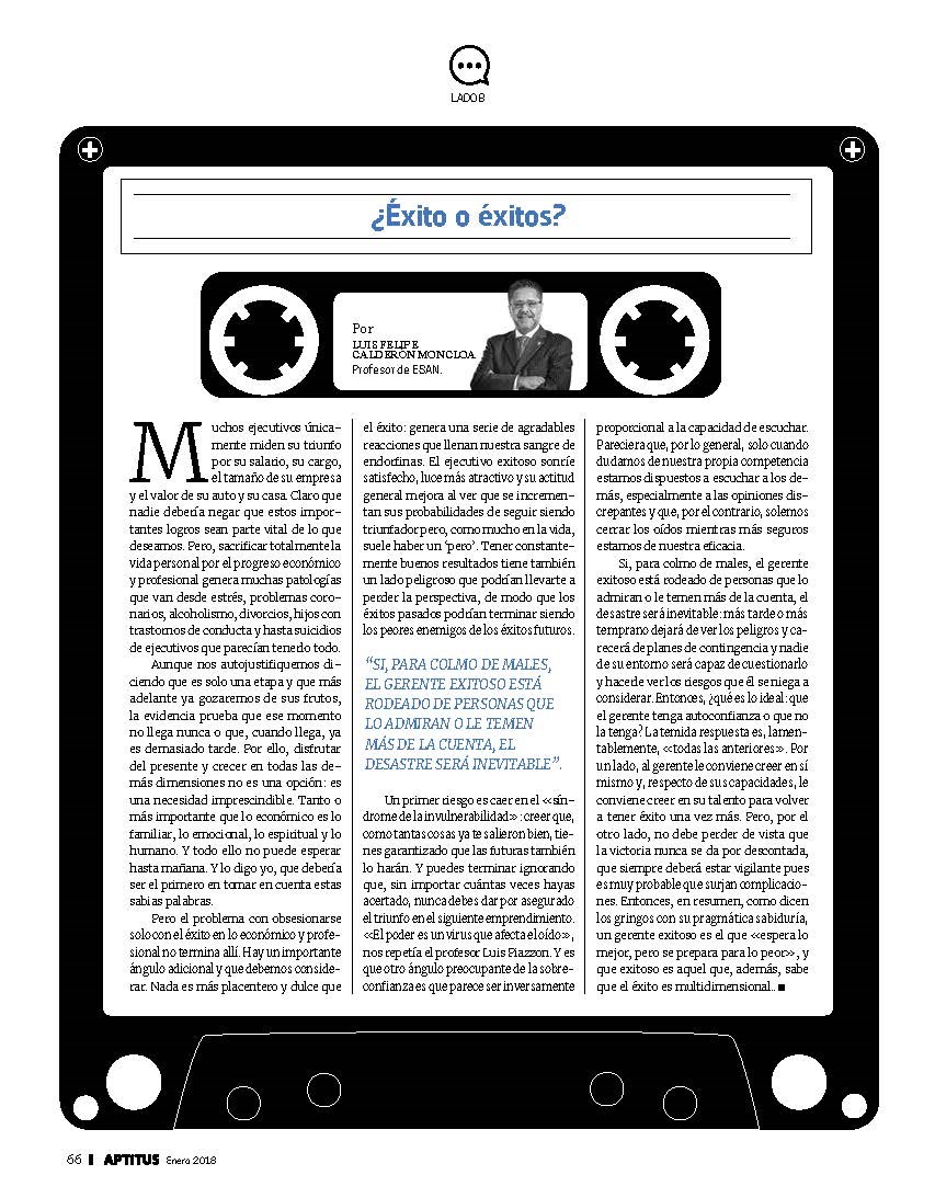 Muchos ejecutivos únicamente miden su triunfo por su salario, su cargo, el tamaño de su empresa y el valor de su auto o su casa. Nadie debería negar que estos importantes logros sean parte vital de lo que deseamos. Sin embargo, sacrificar totalmente la vida personal por el progreso económico y profesional genera muchas patologías que van desde estrés, problemas coronarios, alcoholismo, divorcios, hijos con trastornos de conducta, y hasta suicidios de ejecutivos que parecían tenerlo todo.