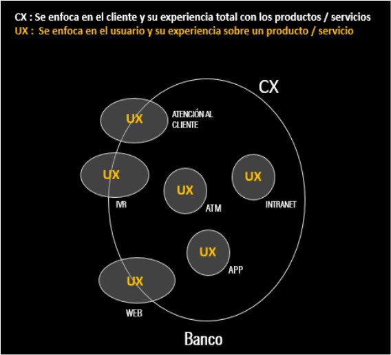 En esencia, la experiencia del usuario es un subconjunto de la experiencia del cliente. Es la suma de todos los conocimientos sobre la experiencia individual de cada usuario con los productos y servicios que tiene una empresa; ustedes (teóricamente) podrían explicar su experiencia de cliente. Desafortunadamente, eso no es lo que funciona, y es por eso que debemos ser conscientes de ambos - UX y CX - cuando creamos productos y servicios.