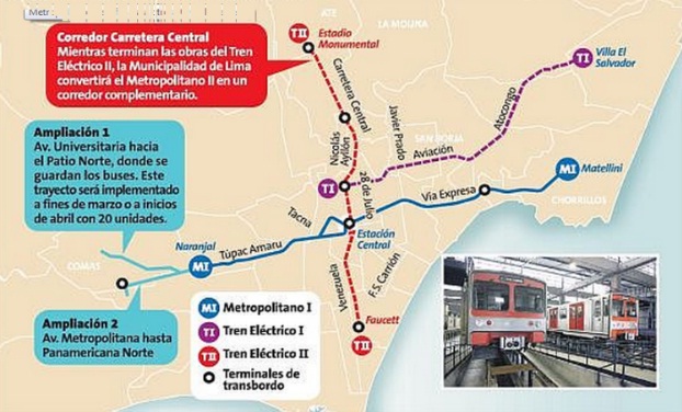 Además de los proyectos anteriormente enumerados, es conveniente hacer referencia a dos proyectos de especial importancia para el sistema de transporte de la ciudad de Lima: La construcción de la ampliación de la Línea 1 del tren eléctrico y de la nueva Línea 2.