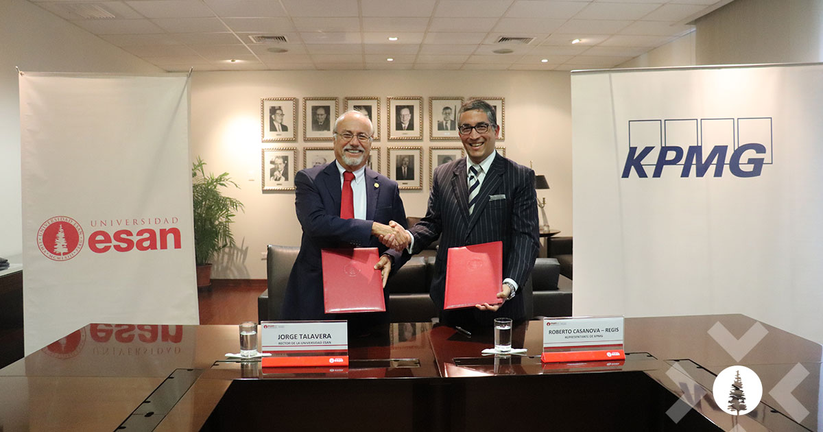 Lima, 7 de marzo de 2019.- KPMG y la Universidad ESAN alcanzaron un joint venture de dos años para ofrecer cursos que sumen la excelencia académica con el amplio conocimiento del sector empresarial de ambas instituciones. El convenio se mantendrá por dos años, y también buscará generar espacios de discusión sobre los principales tema económicos y empresariales del país.