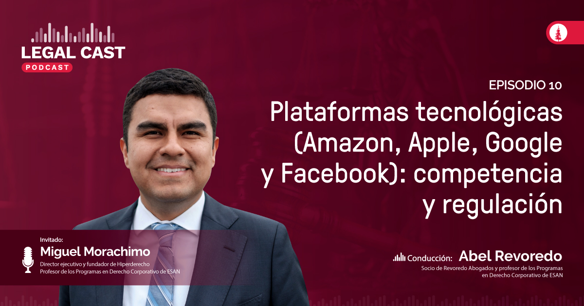 Abel Revoredo y Miguel Morachimo, profesores de los Programas en Derecho Corporativo de ESAN, analizan en el episodio 10 de #LegalCast la citación del Congreso de los Estados Unidos a los gigantes tecnológicos (Amazon, Apple, Google y Facebook) y reflexionan sobre las implicancias regulatorias que existen con respecto a las plataformas tecnológicas y la libre competencia en este mercado.