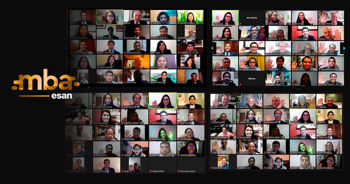 Respetando las disposiciones del gobierno sobre el aislamiento social obligatorio, se organizó una ceremonia online para cada nueva promoción. Estos eventos contaron con la participación de las autoridades de la institución, Jorge Talavera, rector de la Universidad ESAN; Peter Yamakawa, decano de ESAN Graduate School of Business, y Eddy Morris, director del MBA, así como los profesores de la facultad.