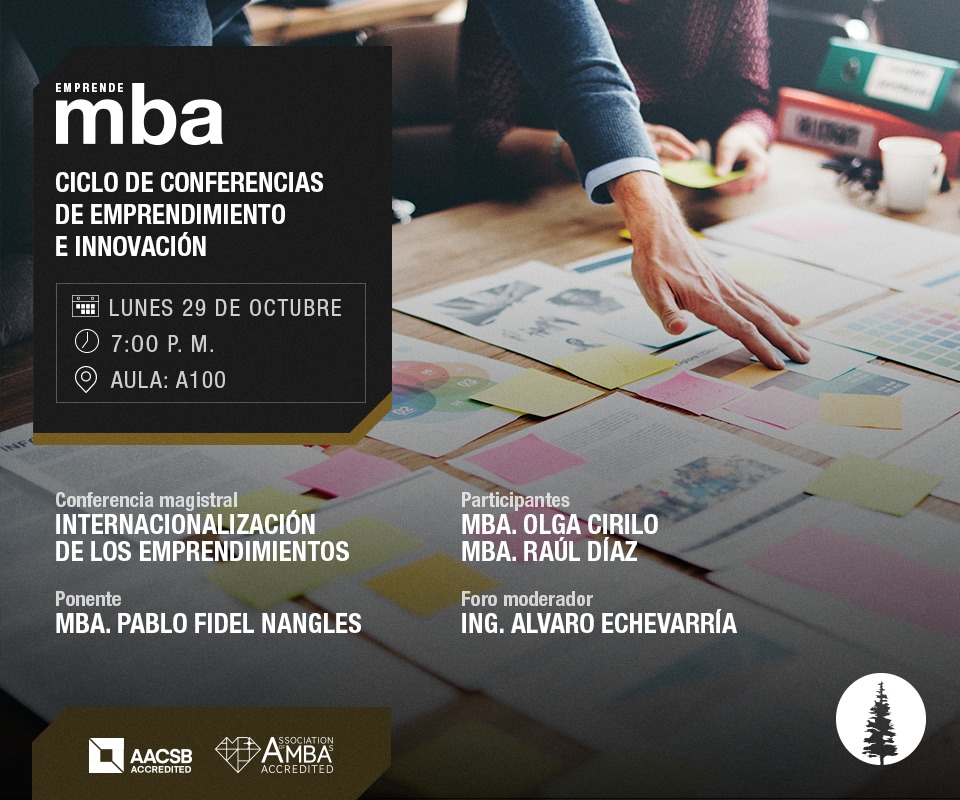 Participa en los próximos eventos en materia de emprendimiento e innovación que realiza Emprende MBA de ESAN. Para informes e inscripciones, contactarse con Olga Cirilo, Coordinadora de Emprendimiento e Innovación del MBA de ESAN, al correo ocirilo@esan.edu.pe. El próximo lunes 29 de octubre se desarrollará la conferencia mensual de Emprendimiento e Innovación en ESAN.