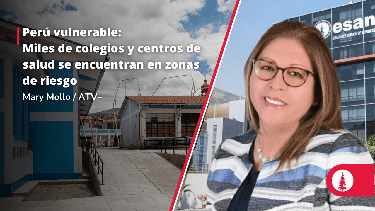 Mary Mollo, especialista en Gestión de Riesgos de Desastres y profesora de los Programas de Educación Ejecutiva de ESAN, advirtió en ATV+ que la próxima temporada de lluvias pone en "riesgo muy alto" a más de 1.3 millones de peruanos. La experta señaló que el problema es cíclico y se agrava por la falta de gestión: hay más de 1300 centros de salud y 8000 colegios en zonas de riesgo ya mapeadas.