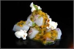 ¿Apostarías a que la foto de abajo es de un riquísimo ceviche? ¿Con parchita? Mejor dicho, con maracuyá, que es tan peruano como la chirimoya. ¿Y con popcorn?
