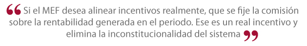 El sistema de saldos no alinea incentivos pues así las AFPs generen pérdidas o rentabilidades mínimas (menores a bonos del Tesoro) seguirán cobrando. Si el MEF desea alinear incentivos realmente, que se fije la comisión sobre la rentabilidad generada en el periodo. Ese es un real incentivo y elimina la inconstitucionalidad del sistema.