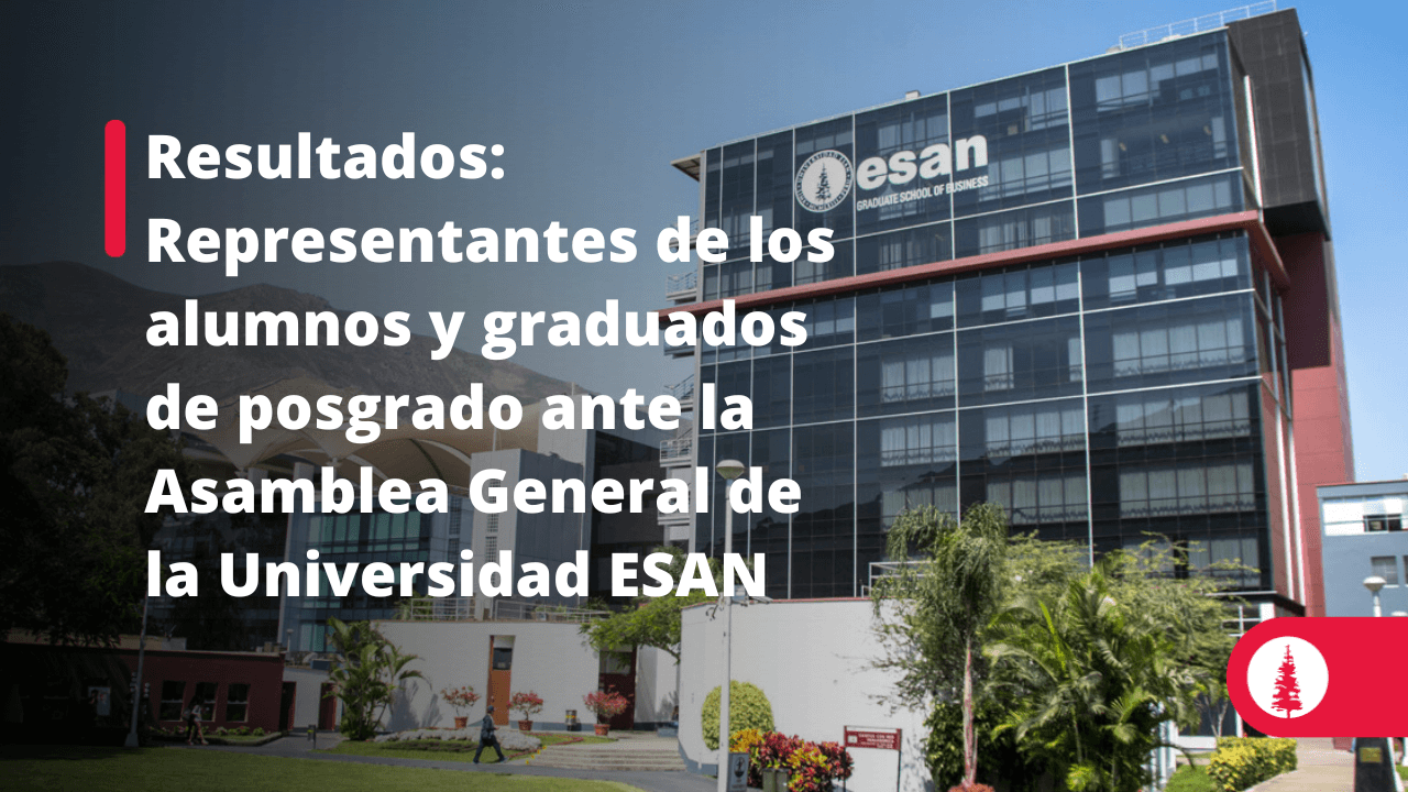 De conformidad con lo dispuesto en el estatuto y reglamentos de la Universidad ESAN, el Comité Electoral Universitario convocó el 19 de septiembre a los alumnos y graduados de la Escuela de Administración de Negocios para graduados a la elección de sus representantes ante la Asamblea General.
