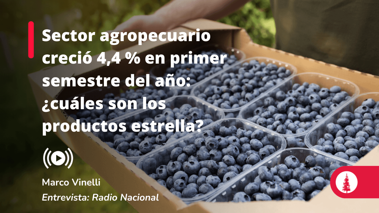 Marco Vinelli, director de la Maestría en Administración de Agronegocios de ESAN, comentó en Radio Nacional cuáles fueron los productos estrella que llevaron al sector agropecuario a crecer 4,4 % entre enero y junio. Además, destacó que en el primer semestre del año la producción que más creció fue la de los arándanos, que subió en aproximadamente el 100 % respecto al año anterior, seguida por las aceitunas (34 %).