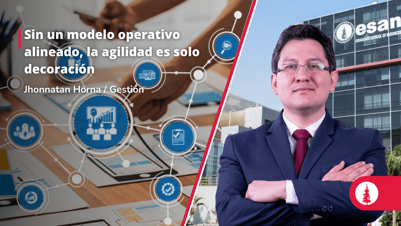 Jhonnatan Horna, profesor del área de Operaciones y Tecnologías de la Información de ESAN, destacó en Gestión que la agilidad depende de un modelo operativo alineado con el propósito y la creación de valor, no solo de herramientas o métodos.