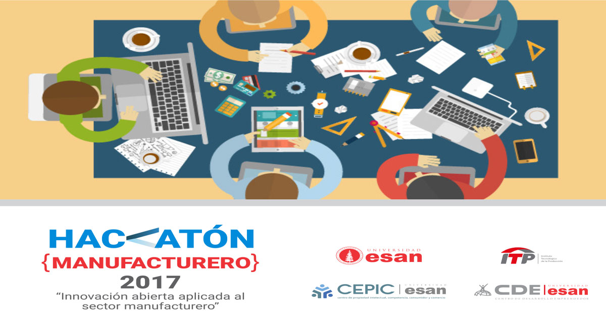 Del 25 al 27 de agosto, la Universidad ESAN, a través del Centro de Propiedad Intelectual, Competencia, Consumidor y Comercio (Cepic), realizará la primera Hackatón Manufacturera 2017 con el propósito de fomentar la aplicación de nuevas tecnologías para el desarrollo de soluciones en el sector manufacturero peruano. El encuentro, además, cuenta con el apoyo del Centro de Desarrollo Emprendedor (CDE) y el FABLAB de la Universidad ESAN.