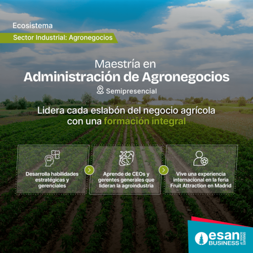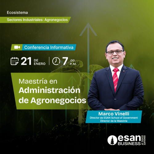 Impulsa tu carrera profesional con la Maestría Especializada en Administración de Agronegocios de ESAN. Únete a nuestra conferencia para conocer todos los aspectos que harán la diferencia en tu carrera.